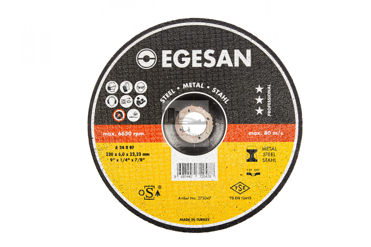 Купить EGESAN Отрезной круг STEEL 230x6x22мм, А24 R BF,угл.сталь, металл (шлифовальный) 10шт/уп в интернет-магазине ksk-company по низким ценам. Всего за 350 рублей.