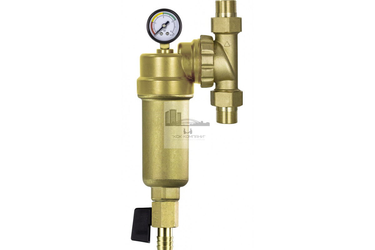 Описание - Фильтр тонкой очистки промывной Tim 1/2" горячий, с поворотным фланцем и манометром
