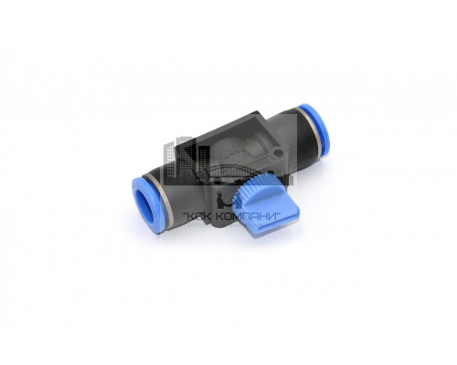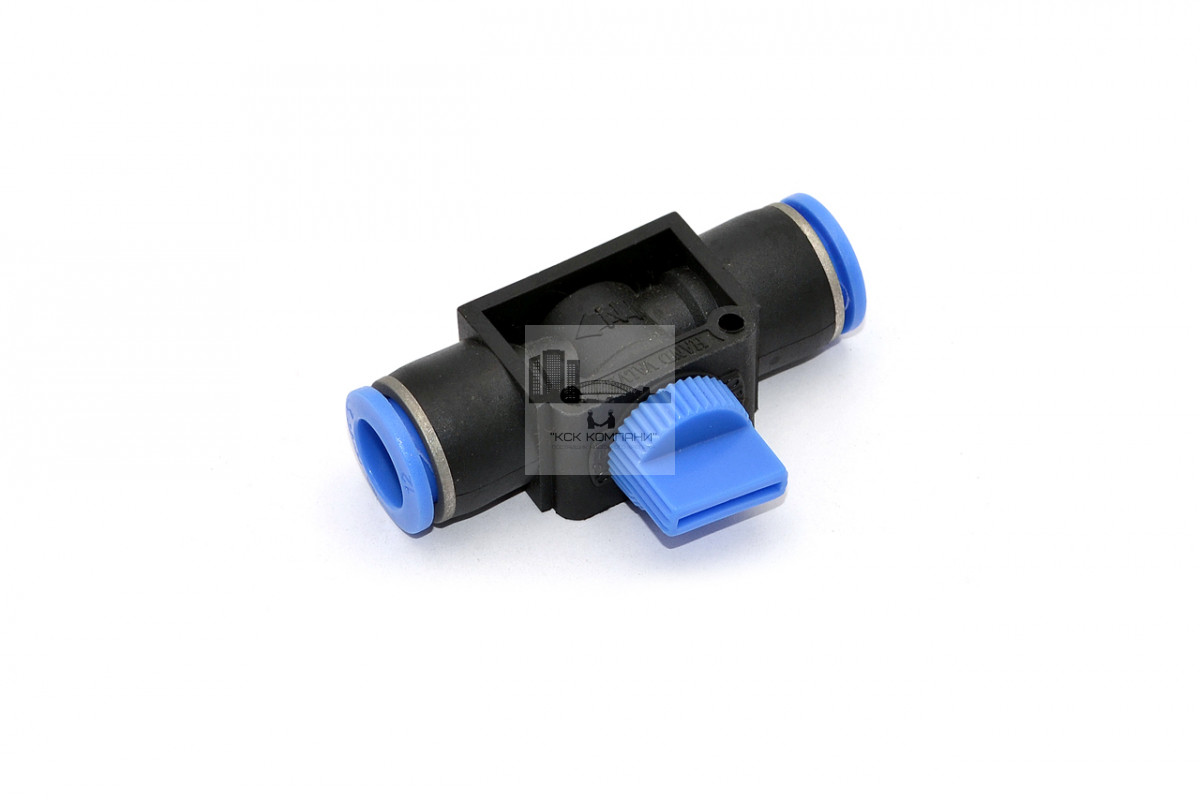 Пневматический фитинг с клапаном для перехода двух трубок одинакового диаметра.