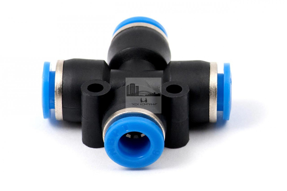 PZA – модель: Х-образный фитинг-соединитель с нажимным цанговым соединением для четырех трубок одинакового диаметра