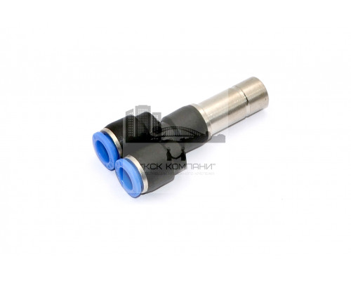 Фитинг-тройник Y-образный переходной для двух пневмотрубок и цангового фитинга разного диаметра.