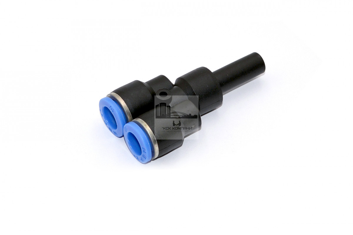Фитинг-тройник Y-образный для соединения двух пневмотрубок и цангового фитинга одинакового диаметра.