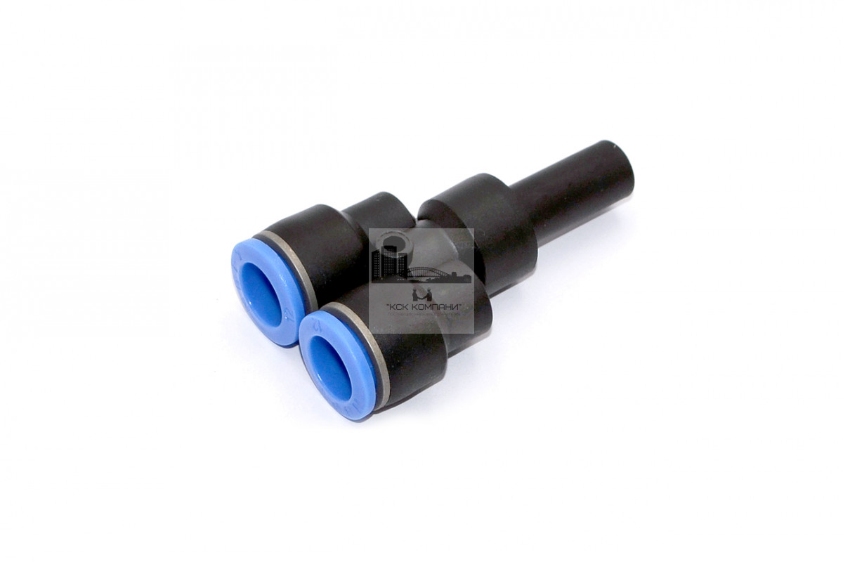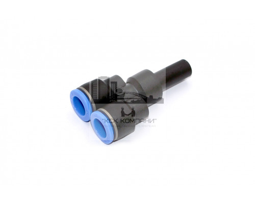 Фитинг-тройник Y-образный для соединения двух пневмотрубок и цангового фитинга одинакового диаметра.