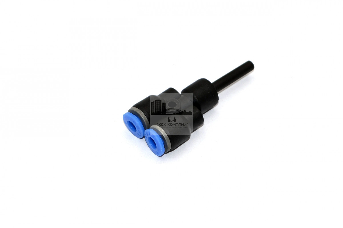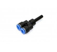 Фитинг-тройник Y-образный для соединения двух пневмотрубок и цангового фитинга одинакового диаметра.
