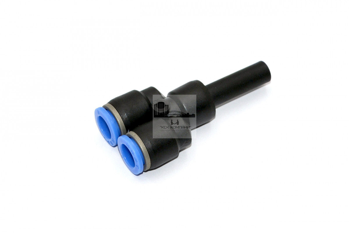 Фитинг-тройник Y-образный для соединения двух пневмотрубок и цангового фитинга одинакового диаметра.