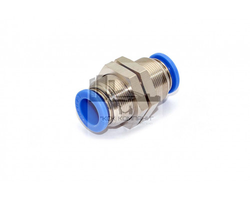 Прямой пневматический фитинг для соединения двух трубок одинакового диаметра с монтажной гайкой под ключ.