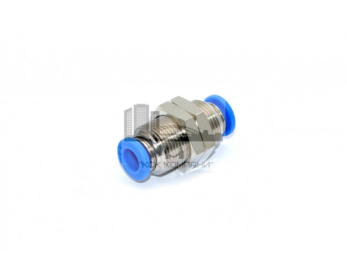 Прямой пневматический фитинг для соединения двух трубок одинакового диаметра с монтажной гайкой под ключ.