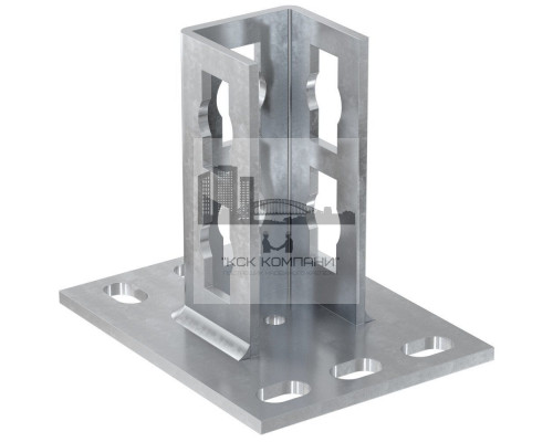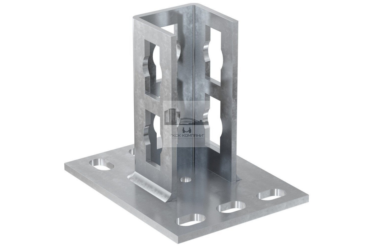 Описание и особенности: Соединительный элемент изготовлен с устойчивого к коррозии материала (нержавеющей стали марки А4). Состоит из опорной поверхности со специальными отверстиями для удобного монтажа и «седла» — это место под расположение монтажной шины. Образовывает жесткие узлы крепления с длительным сроком эксплуатации. |
