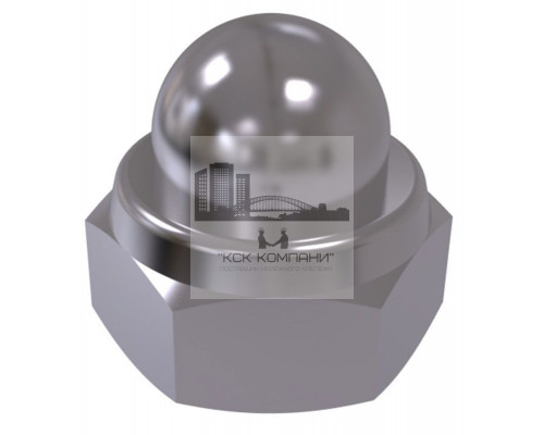Крепежная деталь представляет собой шестигранную гайку с внутренней метрической резьбой, верхняя часть изделия закрыта аккуратным металлическим колпачком, имеющим сферическую форму. Внутри метиза находится нейлоновая вставка, препятствующая самопроизвольному раскручиванию.