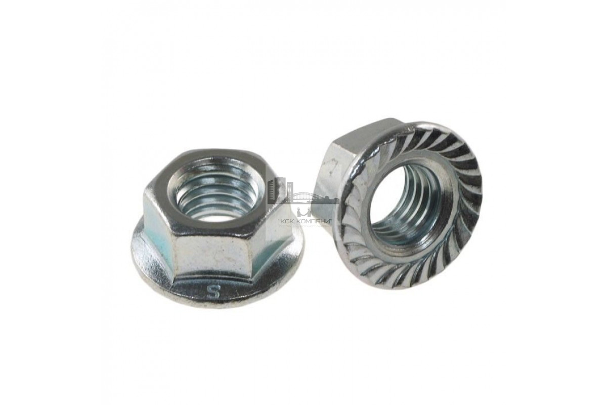 DIN 6923 гайка шестигранная с фланцем самоконтрящаяся из оцинкованной стали, класс прочности 8.0.