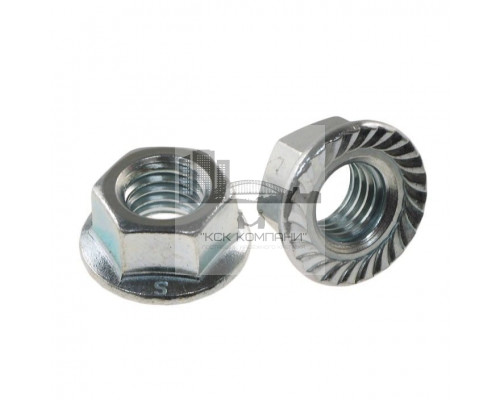 DIN 6923 гайка шестигранная с фланцем самоконтрящаяся из оцинкованной стали, класс прочности 8.0.