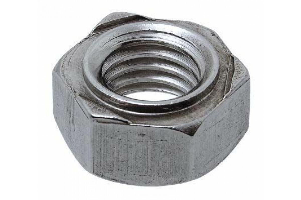 Особенности: Крепежный элемент, выполненный в соответствии с DIN 929, устанавливается к металлическим поверхностям с помощью сварки. Имеет вид шестигранника со сквозным резьбовым отверстием по центру. Используется в паре с болтами, шпильками или винтами, выдерживает вибрационную нагрузку без отвинчивания. |