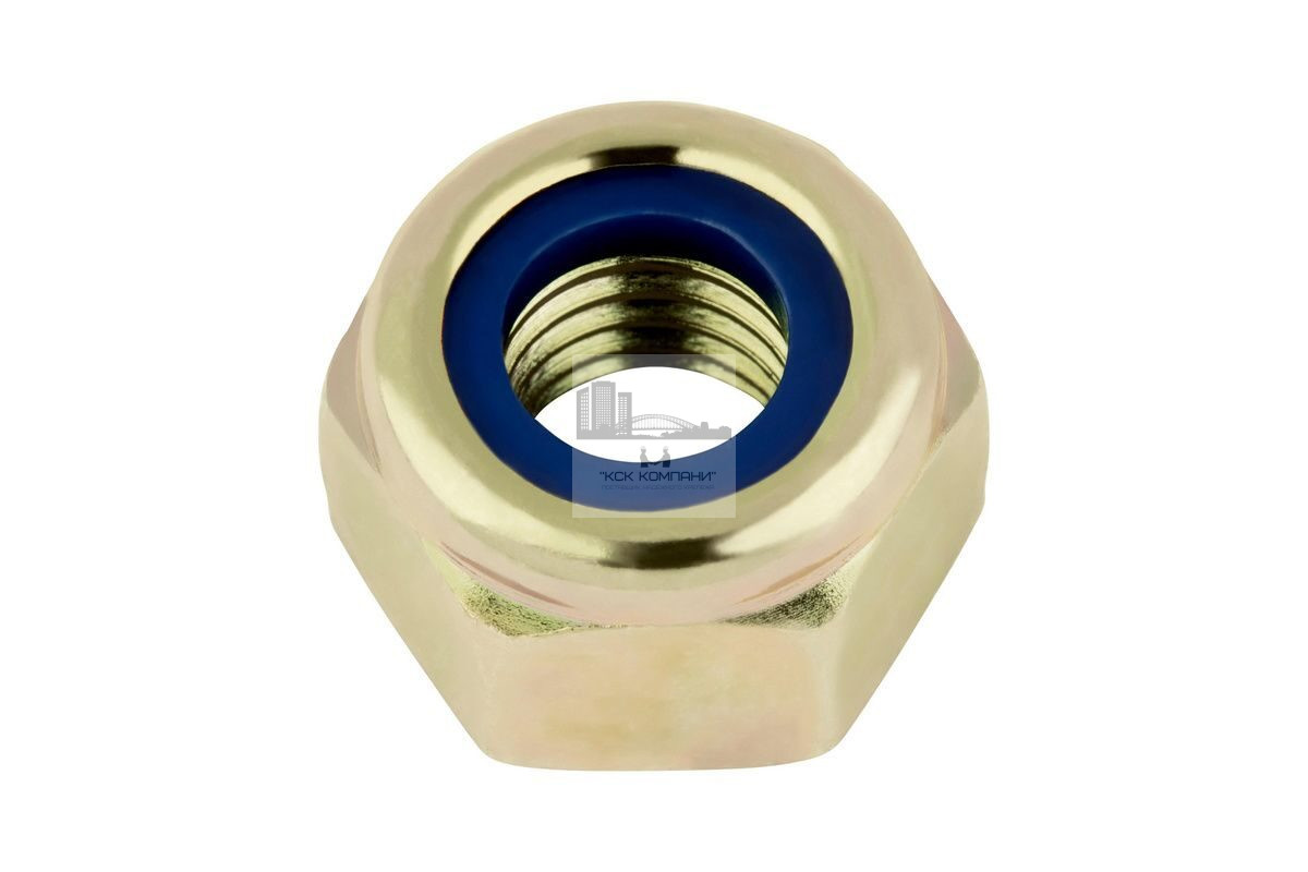 DIN 985 гайка шестигранная самоконтрящаяся, оснащенная специальным стопором в виде нейлонового кольца. Резьба метрическая, размеры могут меняться в диапазоне М3-М48.