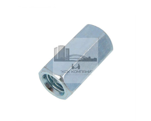 Гайка соединительная DIN 6334 – это удлинённый крепёжный элемент, который применяется для фиксации крепежа с метрической резьбой. Метиз используется совместно с болтами, винтами и шпильками. Наличие оцинкованного покрытия позволяет применять гайку соединительную 6334 в умеренной влажной среде.