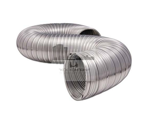 Однослойный полужесткий газоход из нержавеющей стали, толщина стенки 80 мкм, радиус изгиба 2D, рабочая температура до +700°С, максимальная скорость газов 30 м/с., давление 10 000 Па.