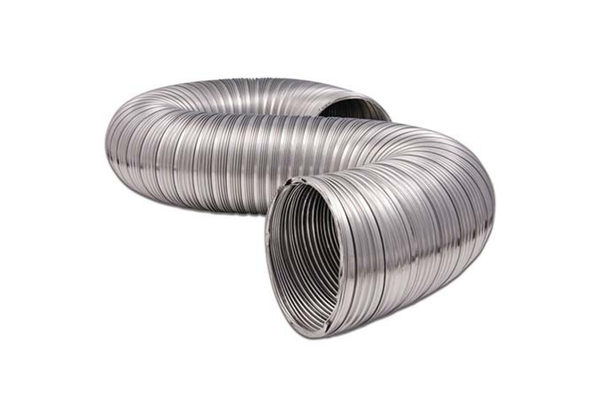 Однослойный полужесткий газоход из нержавеющей стали, толщина стенки 80 мкм, радиус изгиба 2D, рабочая температура до +700°С, максимальная скорость газов 30 м/с., давление 10 000 Па.