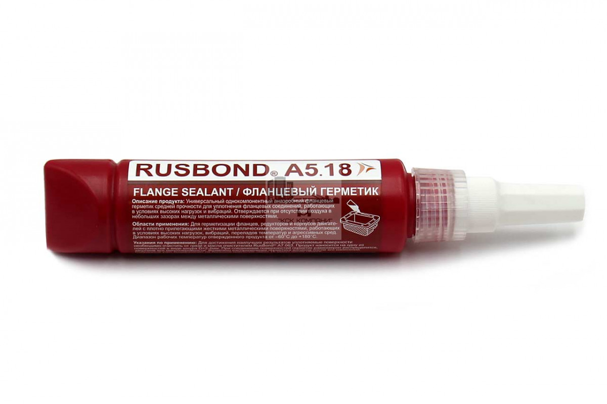 RusBond А5.18 – универсальный однокомпонентный анаэробный фланцевый герметик средней прочности для уплотнения фланцевых соединений, работающих в условиях высоких нагрузок и вибраций. Процесс отверждения обусловлен отсутствием воздуха в небольших зазорах между металлическими поверхностями.