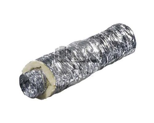 Изолированные гибкие воздуховоды изготавливаются из металлизированной полимерной плёнки с витками высокопрочной стальной проволоки между слоями. Со стандартной теплоизоляцией 25 мм. Используется материал "УРСА". Минимизируют потерю температуры на расстояние до 20 метров. Гибкий воздуховод просто соединяется с каналами круглого сечения и может закрепляться хомутами. Изолированные воздуховоды эффективно используют в системах кондиционирования и вентиляции с низким и средним давлением. В сжатом состоянии 120 см. Рабочая длина 9,5 м. Максимальная длина 10м.