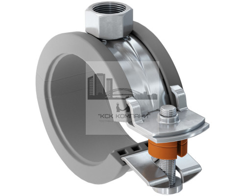 Описание и особенности: Со вставкой хомут применяется как подвижная опора, а без вставки — неподвижная опора. Перезатяжка трубы хомутом исключена благодаря специальной вставке на винте замка. Звукоизолирующая прокладка плотно посажена. Крепежный элемент обладает компактной конструкцией. |