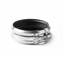 Нержавеющие элементы с резиновой вставкой крепко обхватывают трубу, удерживаются при помощи прочного болта.