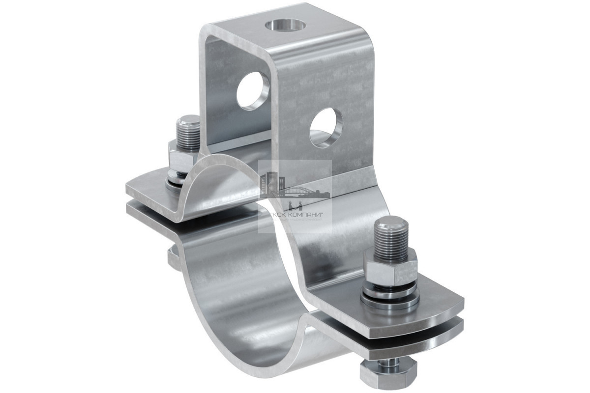 Описание и особенности: Хомут изготовлен из листовой оцинкованной стали размером 4x40 мм. Изделие состоит из пары симметричных полухомутов, рассчитанных для размещения трубопровода с наружным диаметром 89 мм. Разъем с двумя зажимными болтами в комплекте с гайками и шайбами способствует более точной подгонке сечения хомута к размеру трубных коммуникаций. Для подвески хомутов к верхнему полухомуту приварен П-образный кронштейн с высотой 30 мм, в каждой из трех поверхностях которого предусмотрены 3-и отверстия с диаметром 14 мм. Эти скважины необходимы для крепления потолочных растяжек. |
