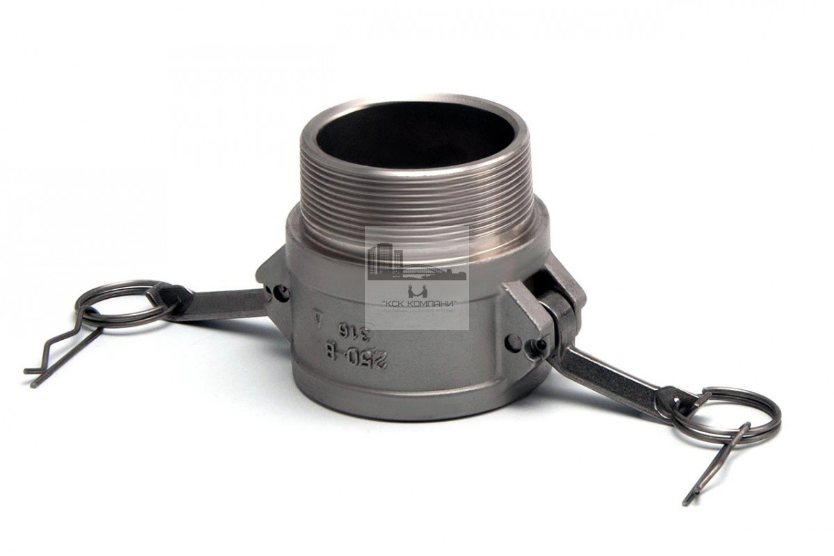 В: тип камлока - муфта с наружней резьбой и приёмной частью "мама" с фиксаторами кулачкового типа