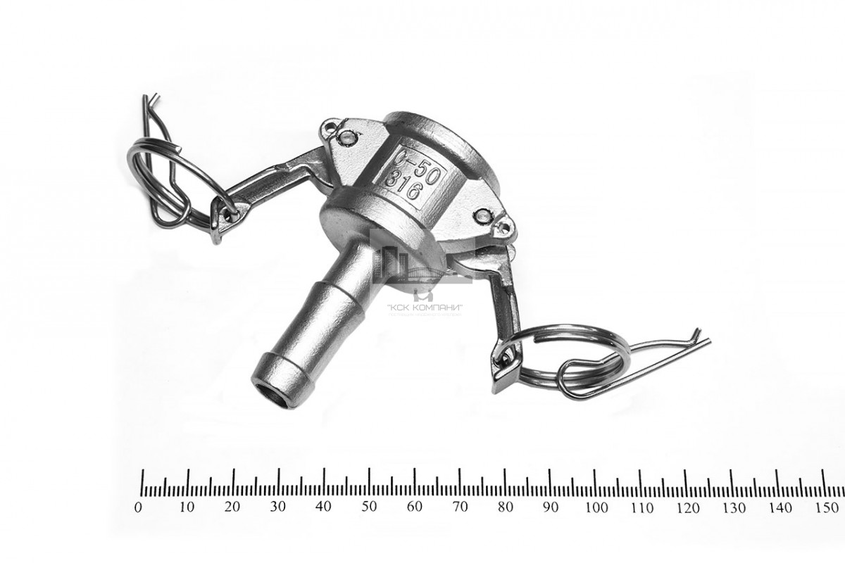 С: тип камлока - муфта со штуцером типа "ёлочка" и приёмной частью "мама" с фиксаторами кулачкового типа