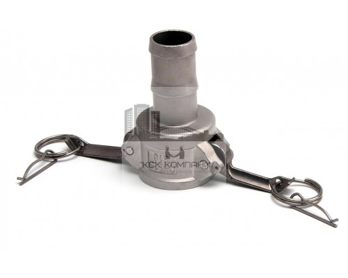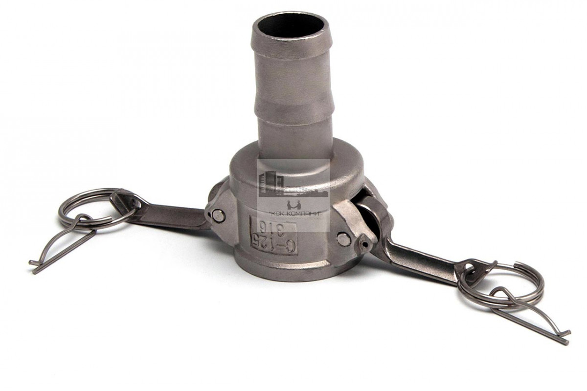 С: тип камлока - муфта со штуцером типа "ёлочка" и приёмной частью "мама" с фиксаторами кулачкового типа