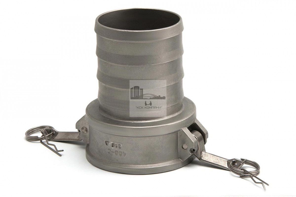 С: тип камлока - муфта со штуцером типа "ёлочка" и приёмной частью "мама" с фиксаторами кулачкового типа