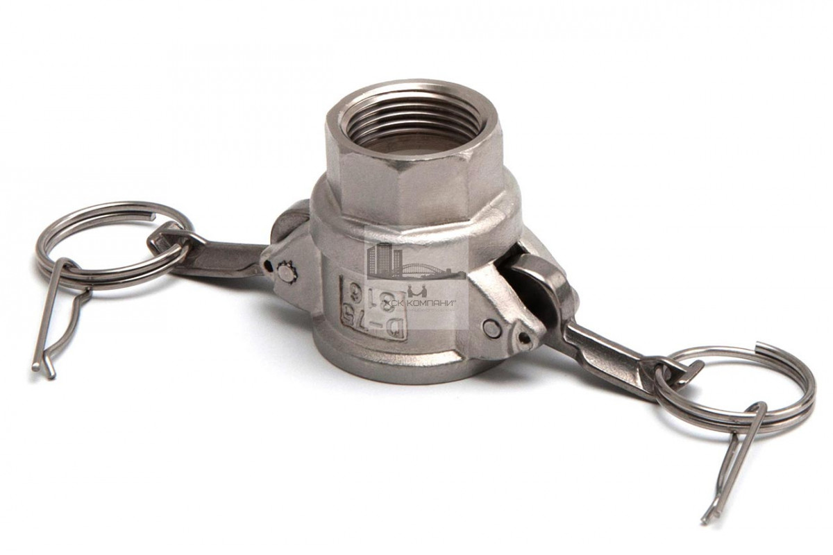 D: тип камлока - муфта с внутренней резьбой и приёмной частью "мама" с фиксаторами кулачкового типа