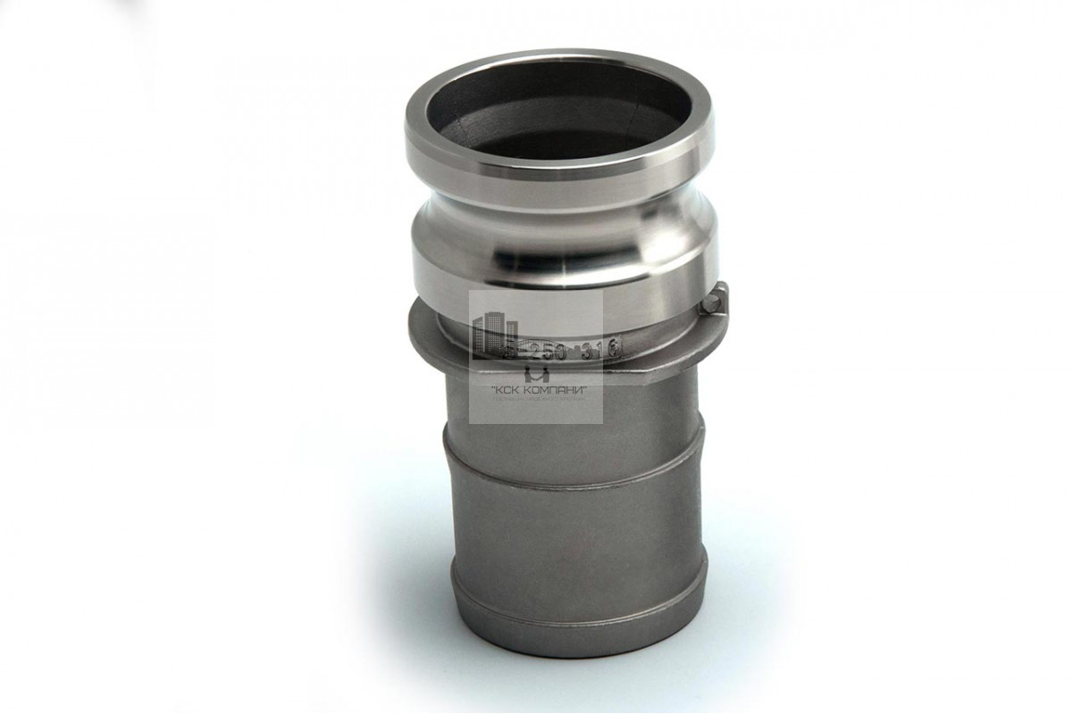 Е: тип камлока - соединительный штуцер типа "ёлочка" с ответной частью "папа"
