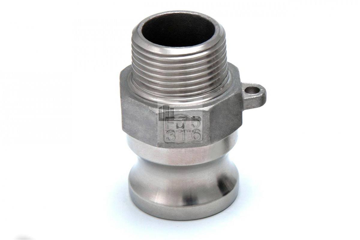F: тип камлока - соединительный штуцер с наружней резьбой и ответной частью "папа"