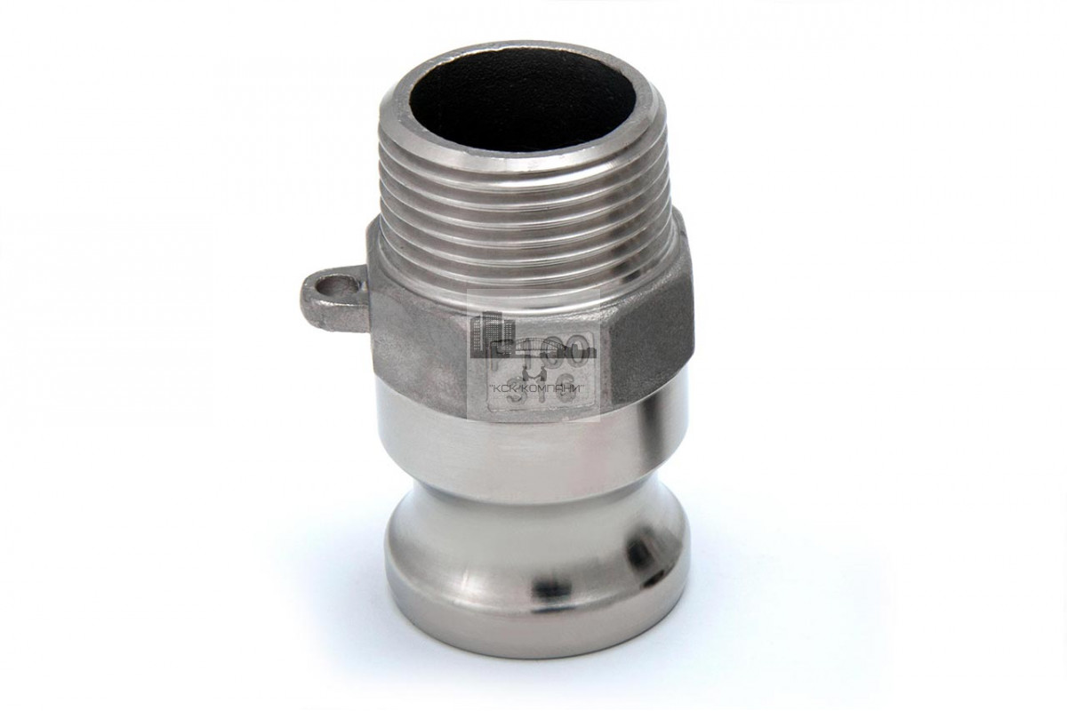 F: тип камлока - соединительный штуцер с наружней резьбой и ответной частью "папа"
