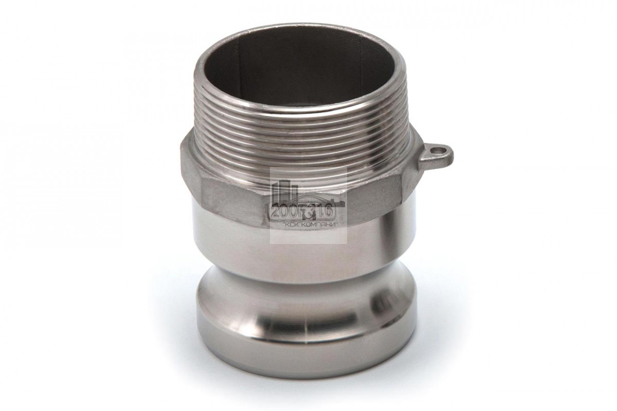 F: тип камлока - соединительный штуцер с наружней резьбой и ответной частью "папа"