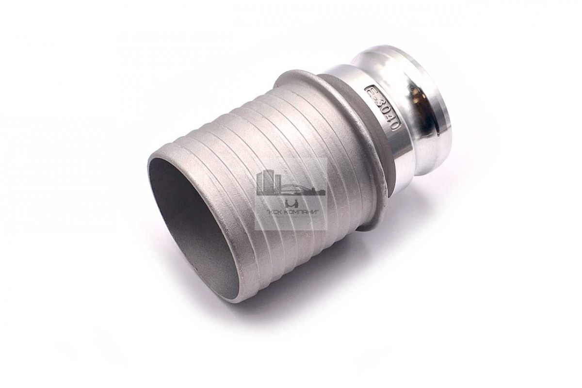 Е: тип камлока - соединительный штуцер типа "ёлочка" с ответной частью "папа"