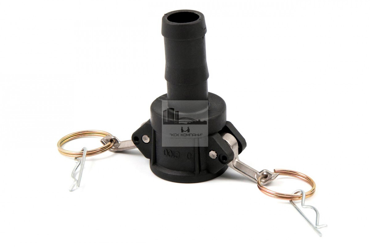С: тип камлока - муфта со штуцером типа "ёлочка" и приёмной частью "мама" с фиксаторами кулачкового типа