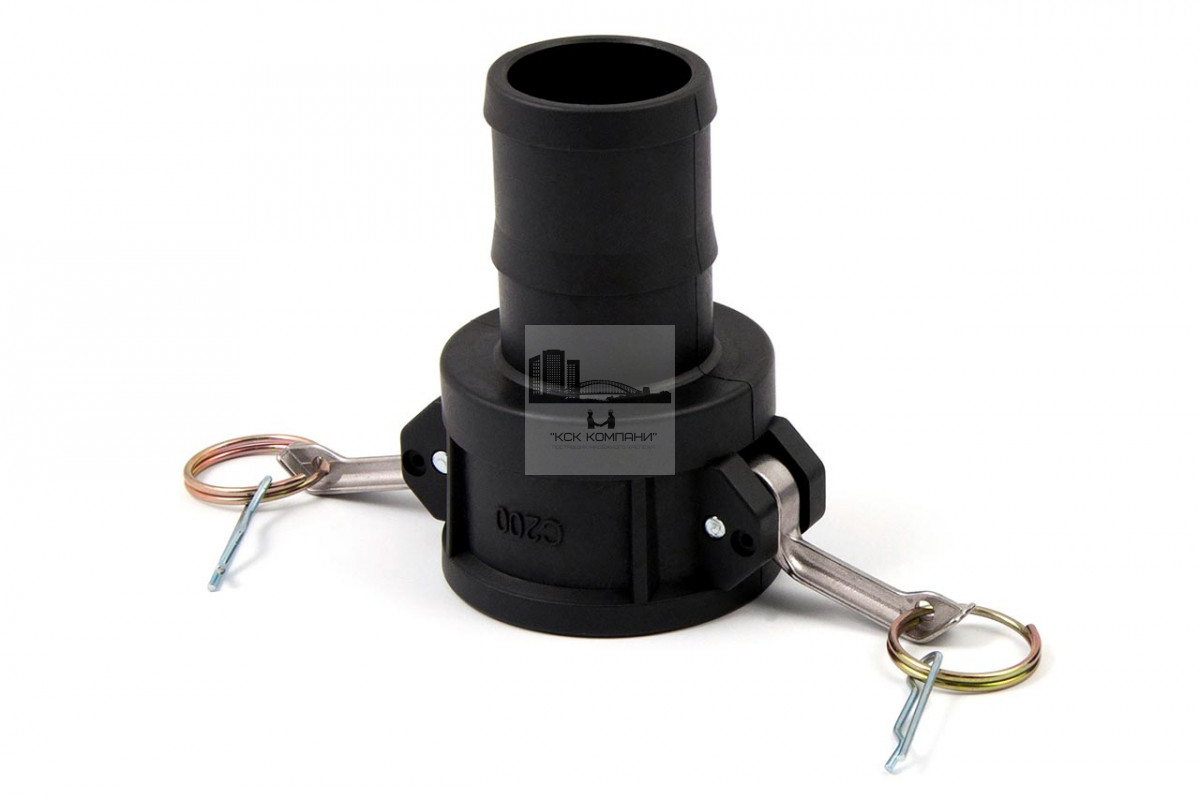 С: тип камлока - муфта со штуцером типа "ёлочка" и приёмной частью "мама" с фиксаторами кулачкового типа