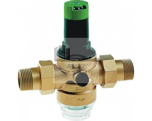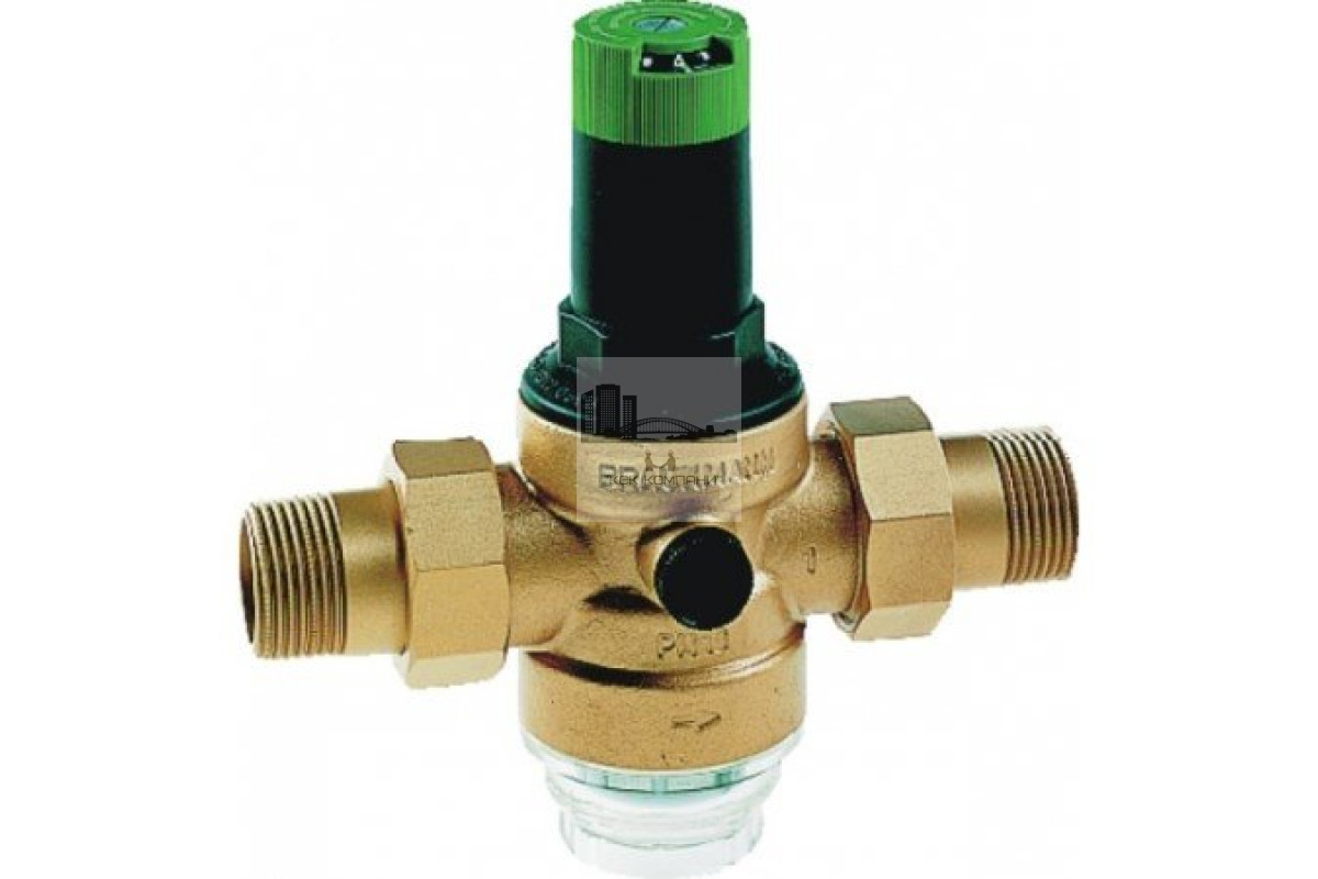 Клапаны понижения давления D06F (редукционные клапаны) предохраняют оборудование от избыточного давления в системе водоснабжения. Установка такого клапана позволяет избежать повреждений, вызванных избыточным давлением и уменьшить расход воды. С помощью клапана с понижением давления можно также поддерживать постоянный уровень установленного давления на выходе, даже при наличии скачков входного давления. Поддержание выходного давления на постоянном уровне сводит к минимуму шум потока воды. Давление на выходе клапана понижения давления D06F выставляется с помощью регулировочной ручки. Уровень установленного давления указан прямо на регулировочной шкале. Вкладыш клапана изготовлен из высококачественного синтетического материала и полностью может быть заменен при необходимости. Клапан имеет встроенный фильтр с ячейками сетки 0,16 мм. Клапан D06F работает по принципу уравнивания усилий. Усилие диафрагмы направленно против силы распрямления пружины. Если впускное давление, а вместе с ним диафрагма, уменьшается в результате забора воды, то большее давление пружины вызывает открытие клапана. Выпускное давление повышается до тех пор, пока усилия диафрагмы и пружины вновь не уравняются. Скачки давления на входе не оказывают влияния на давление, установленное на выходе. ОБЩИЕ ХАРАКТЕРИСТИКИ: Корпус с внешней резьбой и резьбовыми отверстиями для манометра (оба на выходе) Материал корпуса из штампованной латуни, устойчивой к вымыванию цинка Штуцеры с наружной резьбой из латуни Сетчатый фильтр из нержавеющей стали(160мкм) Чаша клапана (для горячей воды) из латуни Чаша клапана (для холодной воды) из прозрачного синтетического материала Регулировочная пружина из пружинной стали Армированная волокном диафрагма из NBR Уплотнения из NBR Основные характеристики Использование для холодной воды Присоединительный размер: 1" Номинальный размер (диаметр): DN 25 Расход: 4.7 м3/час Максимальная температура воды: до 40°C Максимальное давление на входе: 25 бар Диапазон регулировки выходного давления: от 1,5 до 6 бар