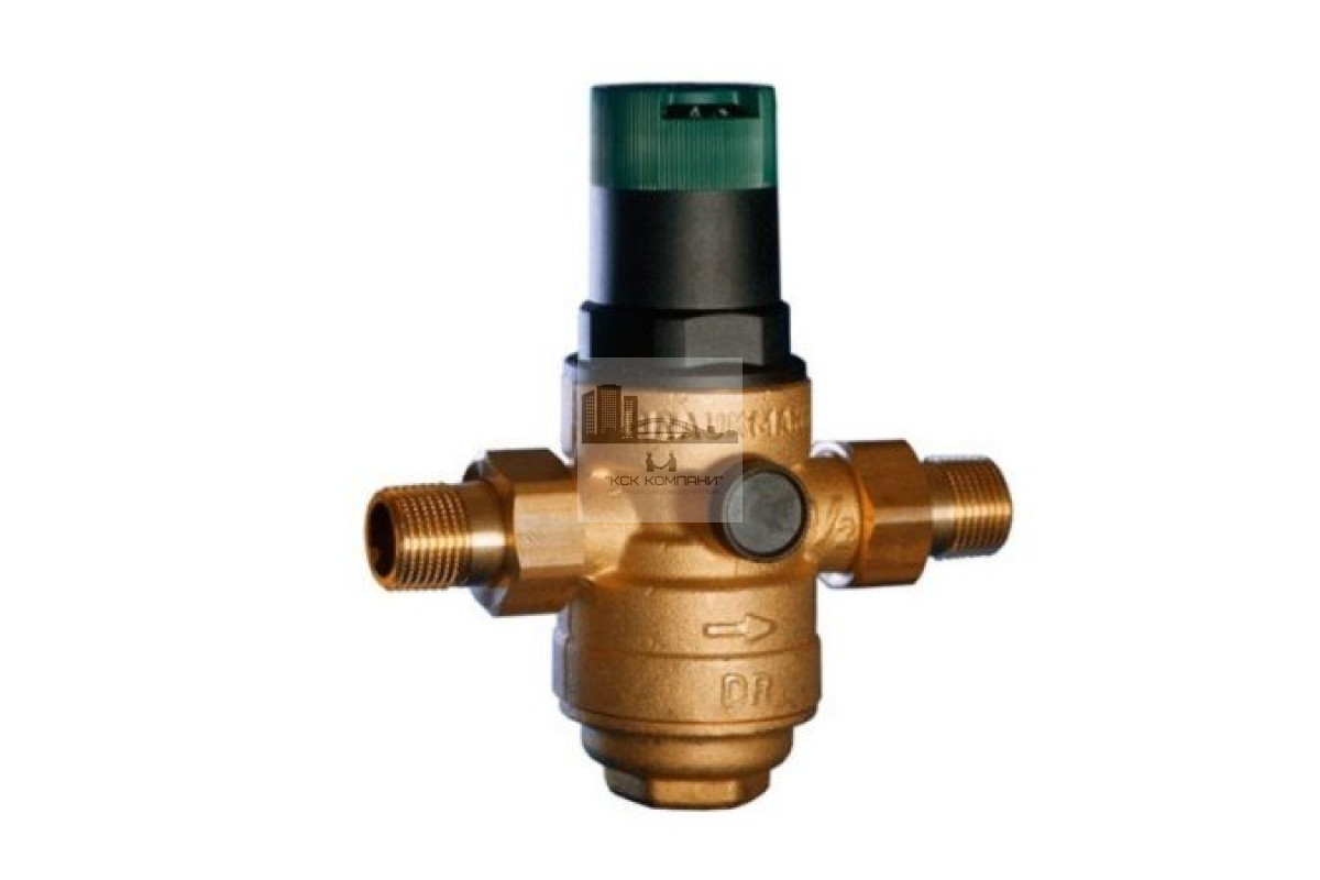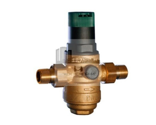 Клапаны понижения давления D06F (редукционные клапаны) предохраняют оборудование от избыточного давления в системе водоснабжения. Установка такого клапана позволяет избежать повреждений, вызванных избыточным давлением и уменьшить расход воды. С помощью клапана с понижением давления можно также поддерживать постоянный уровень установленного давления на выходе, даже при наличии скачков входного давления. Поддержание выходного давления на постоянном уровне сводит к минимуму шум потока воды. Давление на выходе клапана понижения давления D06F выставляется с помощью регулировочной ручки. Уровень установленного давления указан прямо на регулировочной шкале. Вкладыш клапана изготовлен из высококачественного синтетического материала и полностью может быть заменен при необходимости. Клапан имеет встроенный фильтр с ячейками сетки 0,16 мм. Клапан D06F работает по принципу уравнивания усилий. Усилие диафрагмы направленно против силы распрямления пружины. Если впускное давление, а вместе с ним диафрагма, уменьшается в результате забора воды, то большее давление пружины вызывает открытие клапана. Выпускное давление повышается до тех пор, пока усилия диафрагмы и пружины вновь не уравняются. Скачки давления на входе не оказывают влияния на давление, установленное на выходе. ОБЩИЕ ХАРАКТЕРИСТИКИ: Корпус с внешней резьбой и резьбовыми отверстиями для манометра (оба на выходе) Материал корпуса из штампованной латуни, устойчивой к вымыванию цинка Штуцеры с наружной резьбой из латуни Сетчатый фильтр из нержавеющей стали(160мкм) Чаша клапана (для горячей воды) из латуни Чаша клапана (для холодной воды) из прозрачного синтетического материала Регулировочная пружина из пружинной стали Армированная волокном диафрагма из NBR Уплотнения из NBR Основные характеристики Использование для холодной воды Присоединительный размер: 2" Номинальный размер (диаметр): DN 32 Расход: 7.2 м3/час Максимальная температура воды: до 80°C Максимальное давление на входе: 25 бар Диапазон регулировки выходного давления: от 1,5 до 6 бар