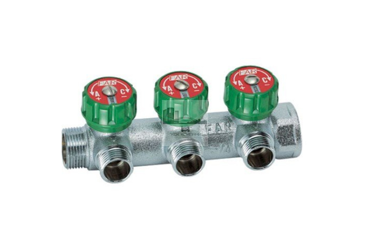 Описание - Коллектор FAR FK 3822 3412TP FAR регулирующий проходной ВР-НР 3/4"х1/2" с 3 отводами