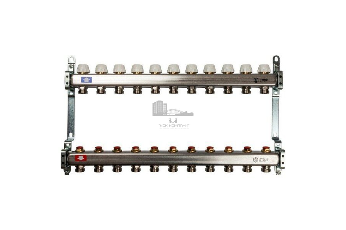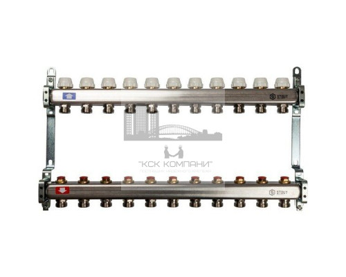 Описание - Коллектор Stout из нержавеющей стали без расходомеров на 11 контуров SMS 0922 000011