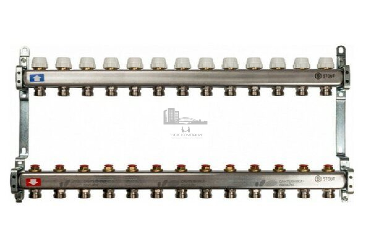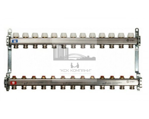 Описание - Коллектор Stout из нержавеющей стали без расходомеров на 13 контуров SMS 0922 000013