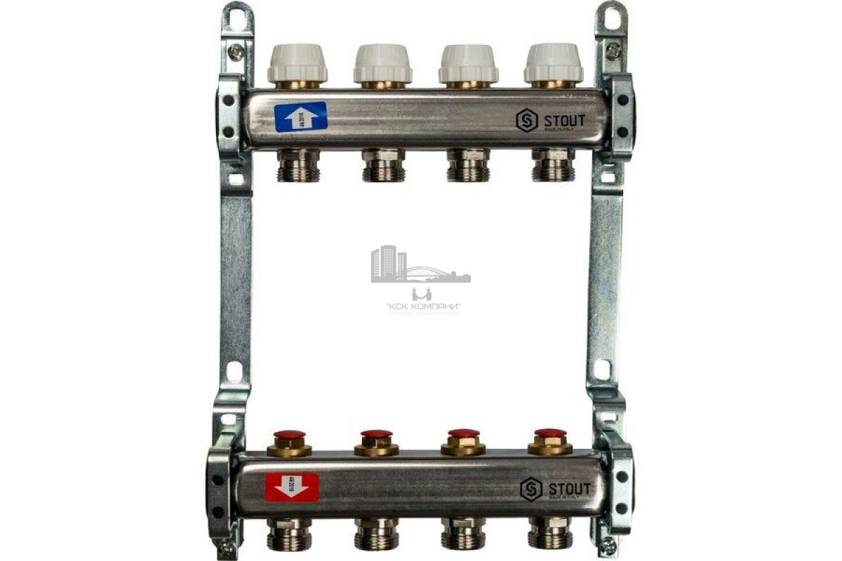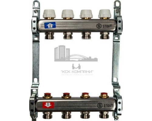 Описание - Коллектор Stout из нержавеющей стали без расходомеров на 4 контура SMS 0922 000004