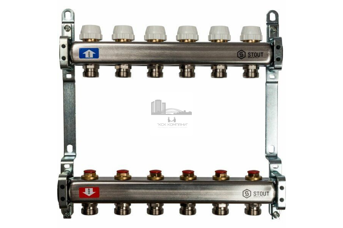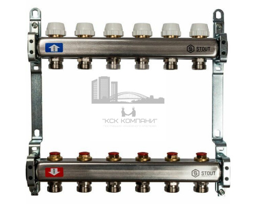 Описание - Коллектор Stout из нержавеющей стали без расходомеров на 6 контуров SMS 0922 000006