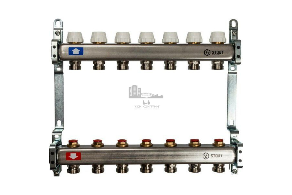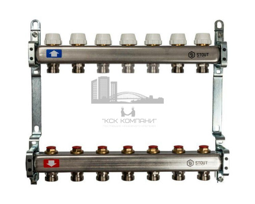 Описание - Коллектор Stout из нержавеющей стали без расходомеров на 7 контуров SMS 0922 000007