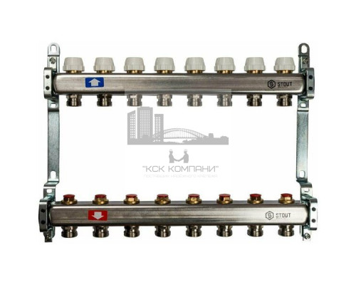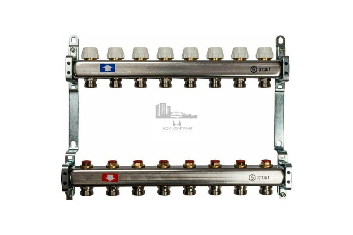 Описание - Коллектор Stout из нержавеющей стали без расходомеров на 8 контуров SMS 0922 000008