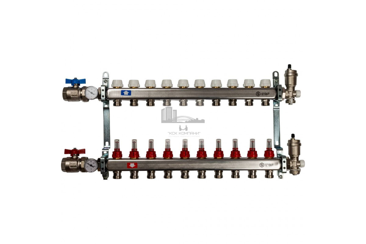 Описание - Коллектор STOUT из нержавеющей стали в сборе с расходомерами 10 вых. SMS 0907 000010