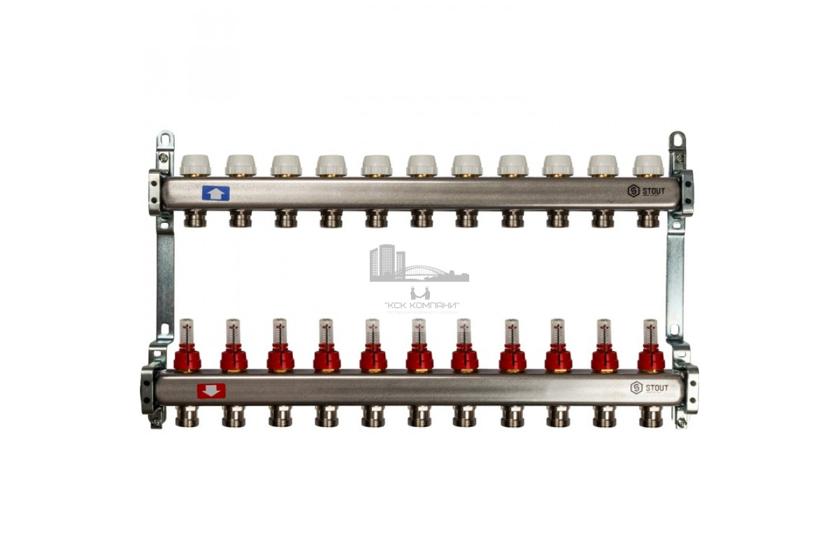 Описание - Коллектор Stout из нержавеющей стали с расходомерами на 11 контуров SMS 0917 000011