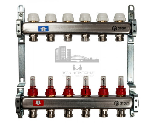 Описание - Коллектор Stout из нержавеющей стали с расходомерами на 6 контуров SMS 0917 000006
