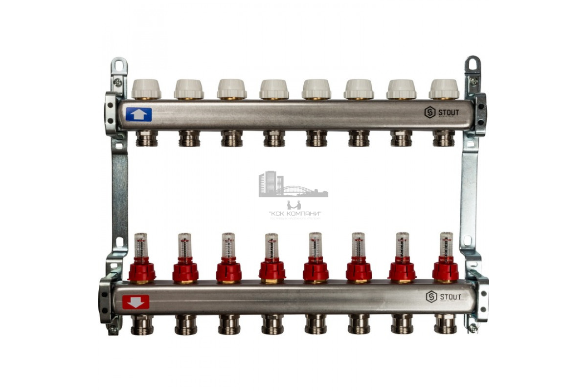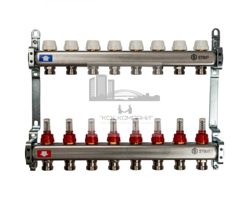 Описание - Коллектор Stout из нержавеющей стали с расходомерами на 8 контуров SMS 0917 000008